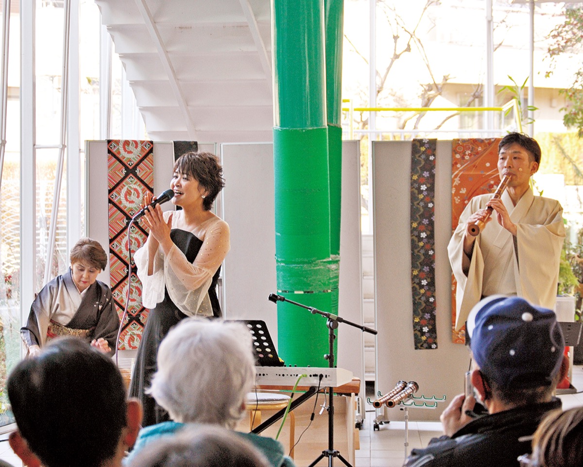 琴を担当した都筑区三曲協会会長の新保真佐江さんは「邦楽の演奏家が減っている今、伝統楽器に親しみを感じてもらえるよう魅力を届けていきたい」と笑顔で話した。