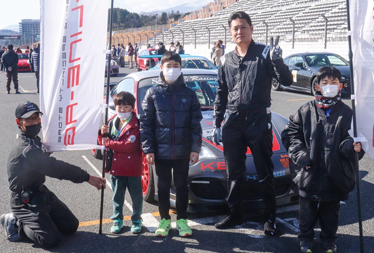 都筑区内でポルシェ専門店を手掛ける(株)KERの経営者、亀田好正さんが1月8日、自身が出場したカーレースに、児童養護施設の子どもたちを招待した。