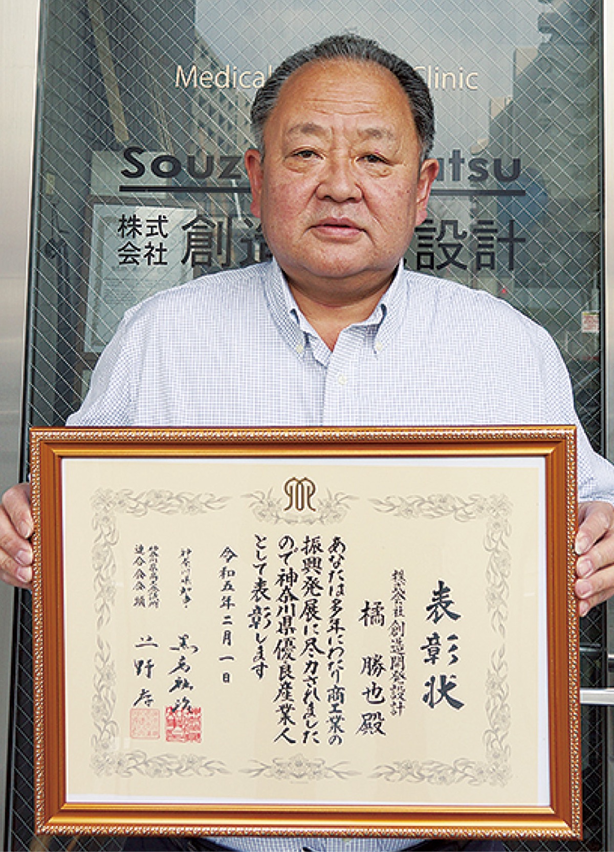 都筑区に本社を置く事業所からは、事業を拡大したことが評価された株式会社創造開発設計の橘勝也さん、生産性の向上が評価された株式会社サカタのタネの林治虫さんが表彰された。