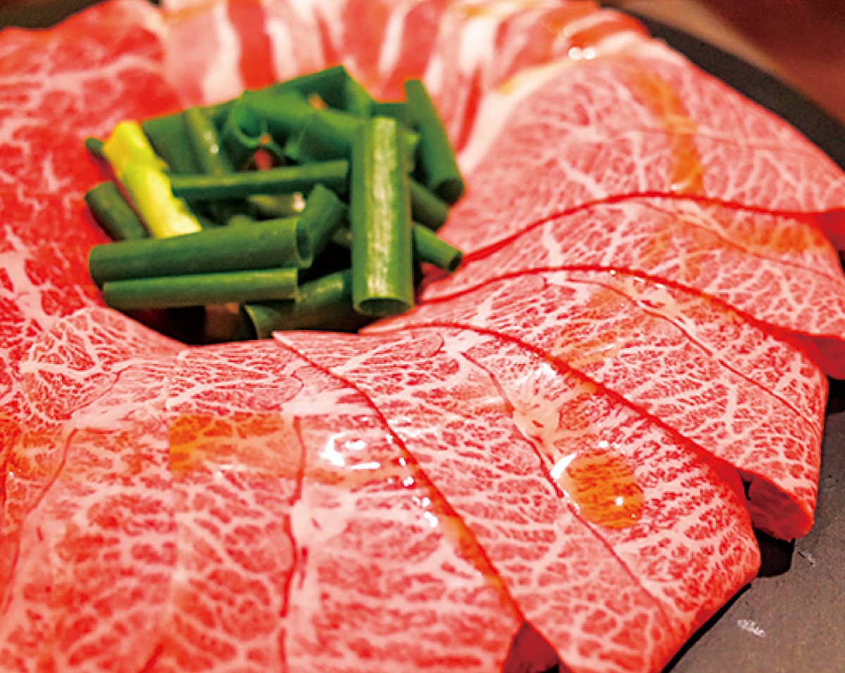 使用する肉は国産黒毛和牛の加工・販売を行う(株)SPECK(大丸/竹内正一社長)が卸す「名人和牛」。産地にかかわらず餌と管理を統一して生産され、オレイン酸含有量の高さと風味の豊かさが特徴だ。