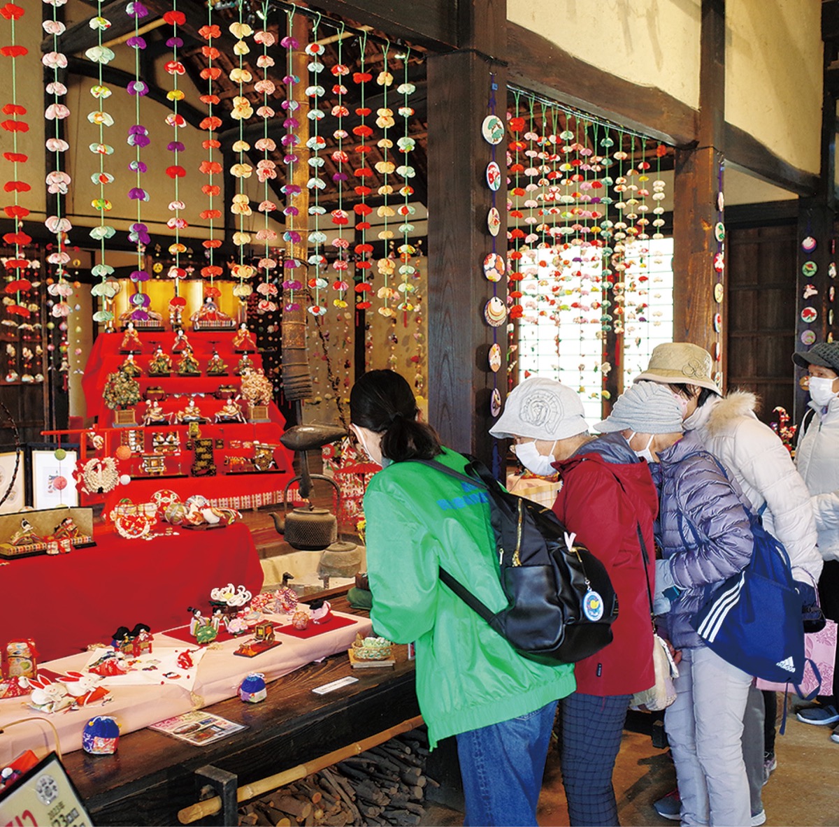 この日は各地区の町内会館から歩いて大塚歳勝土遺跡公園へ。その後訪れた都筑民家園では、ひな祭りに合わせて展示されている吊し雛などの見学を楽しんだ。
