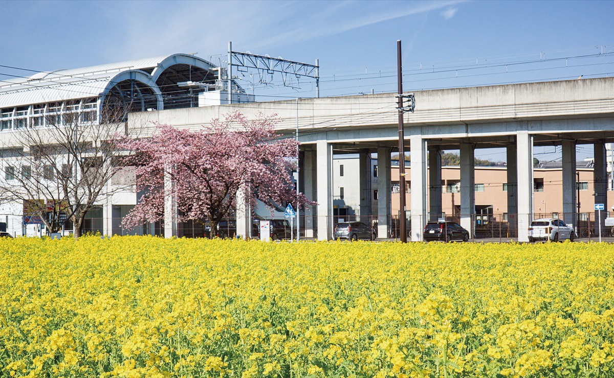 春の見どころスポットとして知られ、観賞に訪れる人も多い。今後は桜も咲き始め、黄色とピンクの美しいコントラストが楽しめる。グリーンライン川和町駅2番出口から歩いてすぐ。