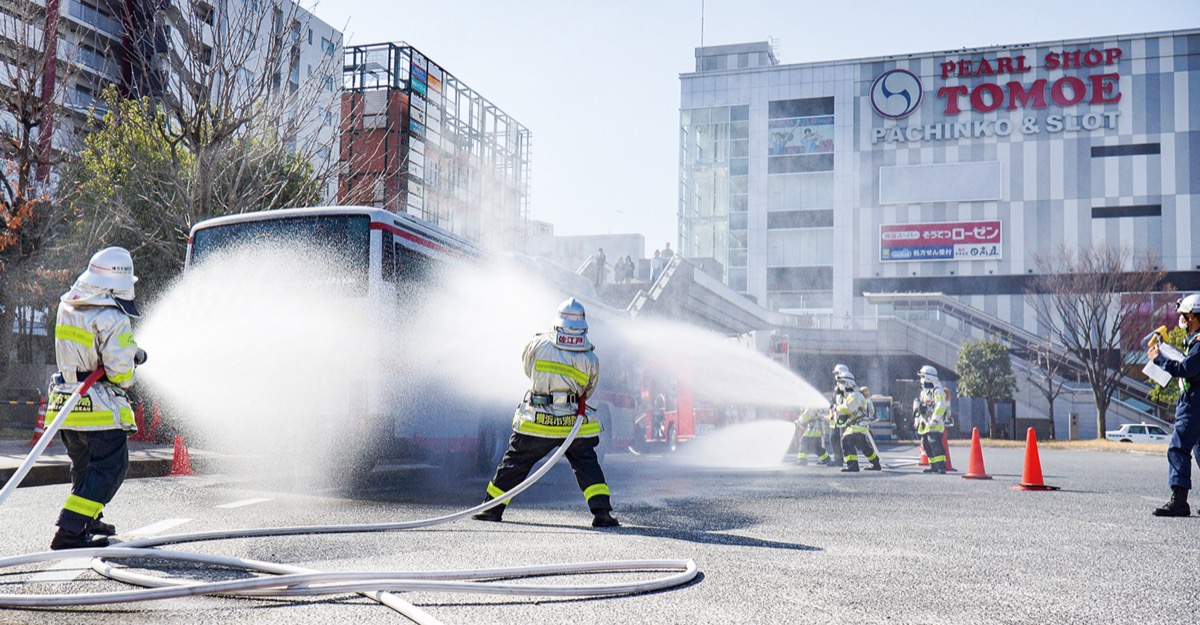 訓練には同社の職員6人と同署の指揮隊や都筑第2消防隊、佐江戸消防隊、北山田消防隊などから30人が参加。同ロータリーに停車しているバスで火災が発生したという想定で行われた。