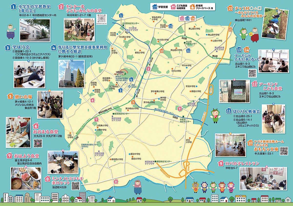 都筑区内の「子ども食堂」や学習支援拠点などの情報がまとめられた「都筑区あんしん子どもの居場所マップ」が完成し、区内各所で配布されている。都筑区役所生活支援課と都筑区社会福祉協議会が連携して作成した。