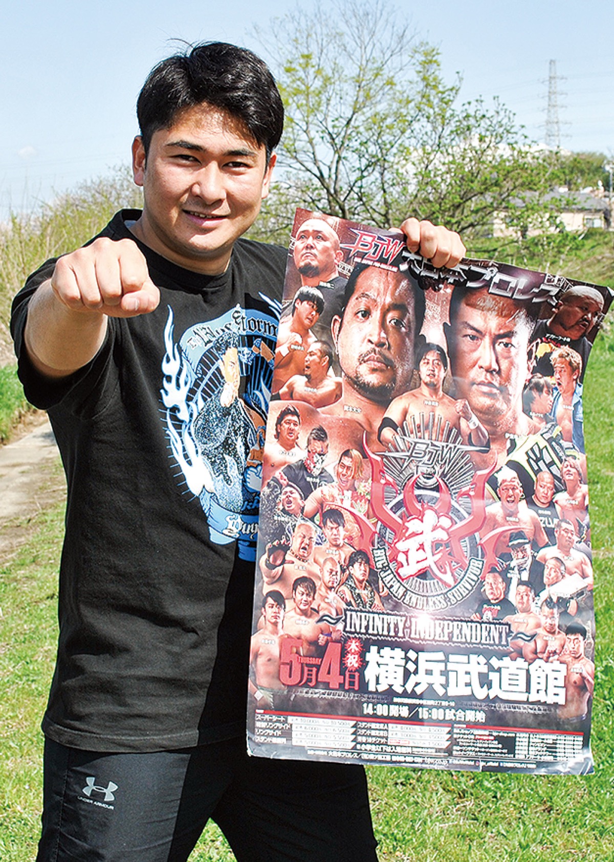 「地元からの声援を力に全力で挑みたい」と話すのは都筑区出身の青木優也選手。同大会のBJW認定世界ストロングヘビー級選手権のベルトをかけて挑戦者として挑むことが決まっている。昨年の大会はケガで出場を辞退。「悔しさをばねに現王者を破り、自分が新たな時代をつくります」と意気込みを語った。