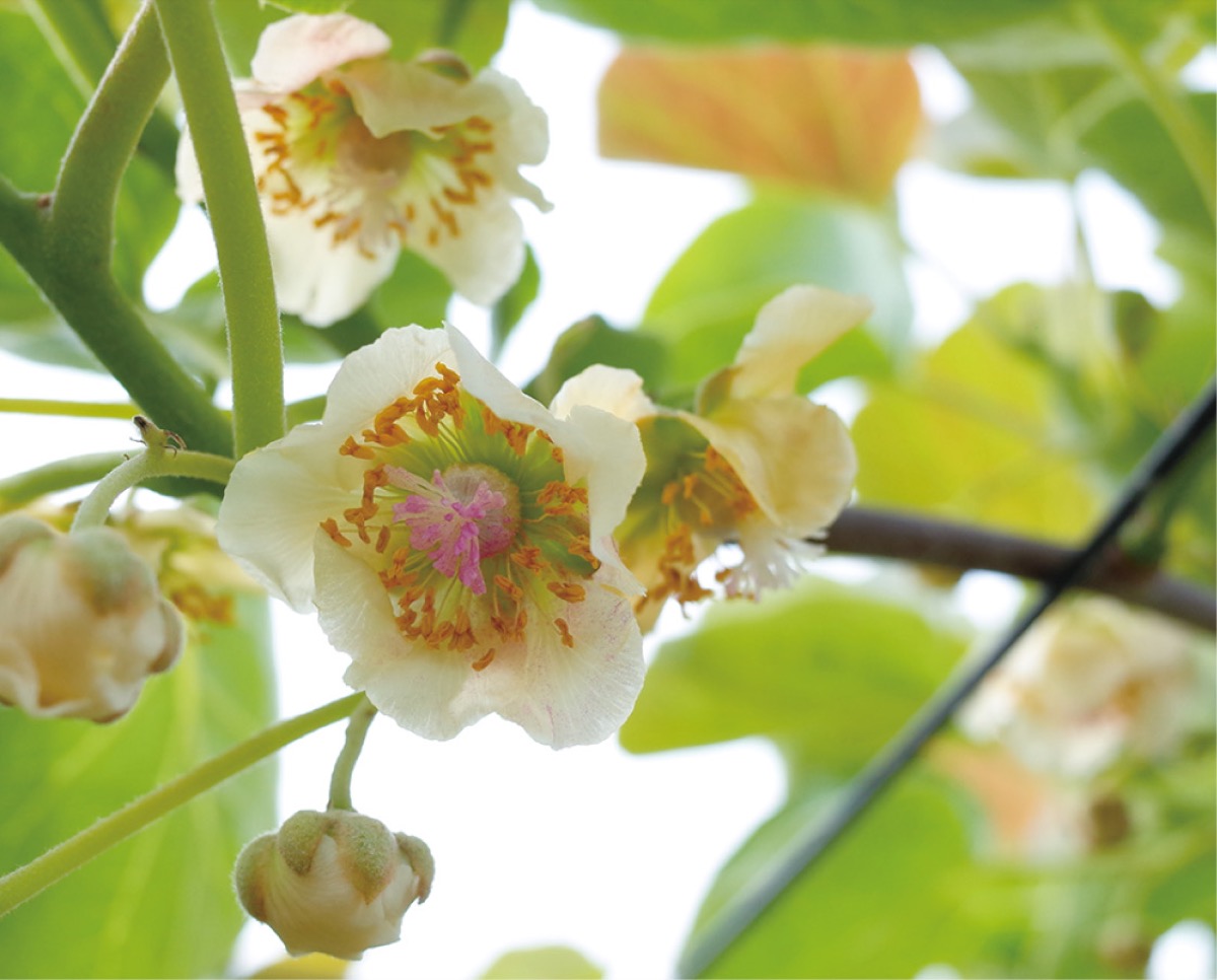 ブドウ、柿など様々な果物が蕾を膨らませ、区内の果樹農家が受粉や剪定作業に忙しいこの時期。折本園(折本町1523)では、キウイフルーツの「摘蕾(てきらい)作業」を行っている。これは結実を安定させたり果実を大きくするために、開花前に蕾を摘むことで、木が花をつけ始めた4月上旬頃から行う作業だ。
