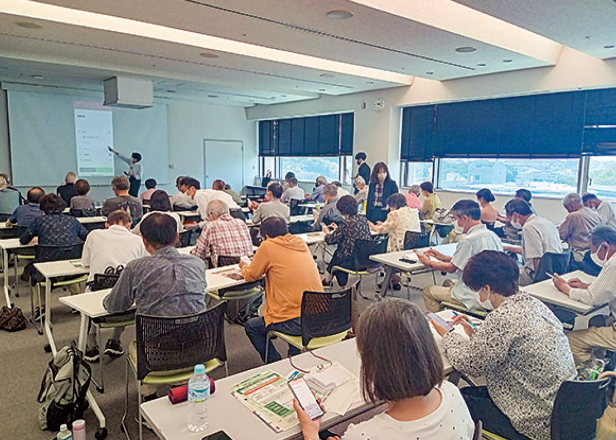 シニア楽農園主催の講演会が5月17日、都筑区総合庁舎内で行われ、同園のメンバーがスマートフォンの使い方について学びを深めた。