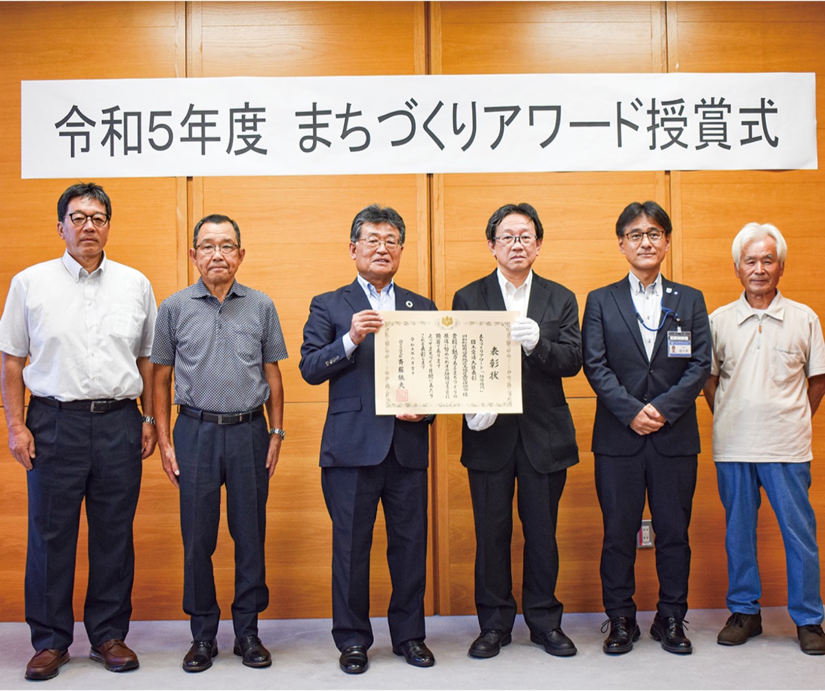 授賞式には、同組合の岩澤伸夫理事長をはじめ、組合理事や関係者ら約10人が出席。国交省職員から表彰状が贈られた。あいさつに立った岩澤理事長は、行政や関係企業・団体の尽力に感謝を述べた上で、「今後は新しい住民と昔からの住民との融合をはかり、安心・安全で、住み続けたい街を目指してやっていきたい」と話した。