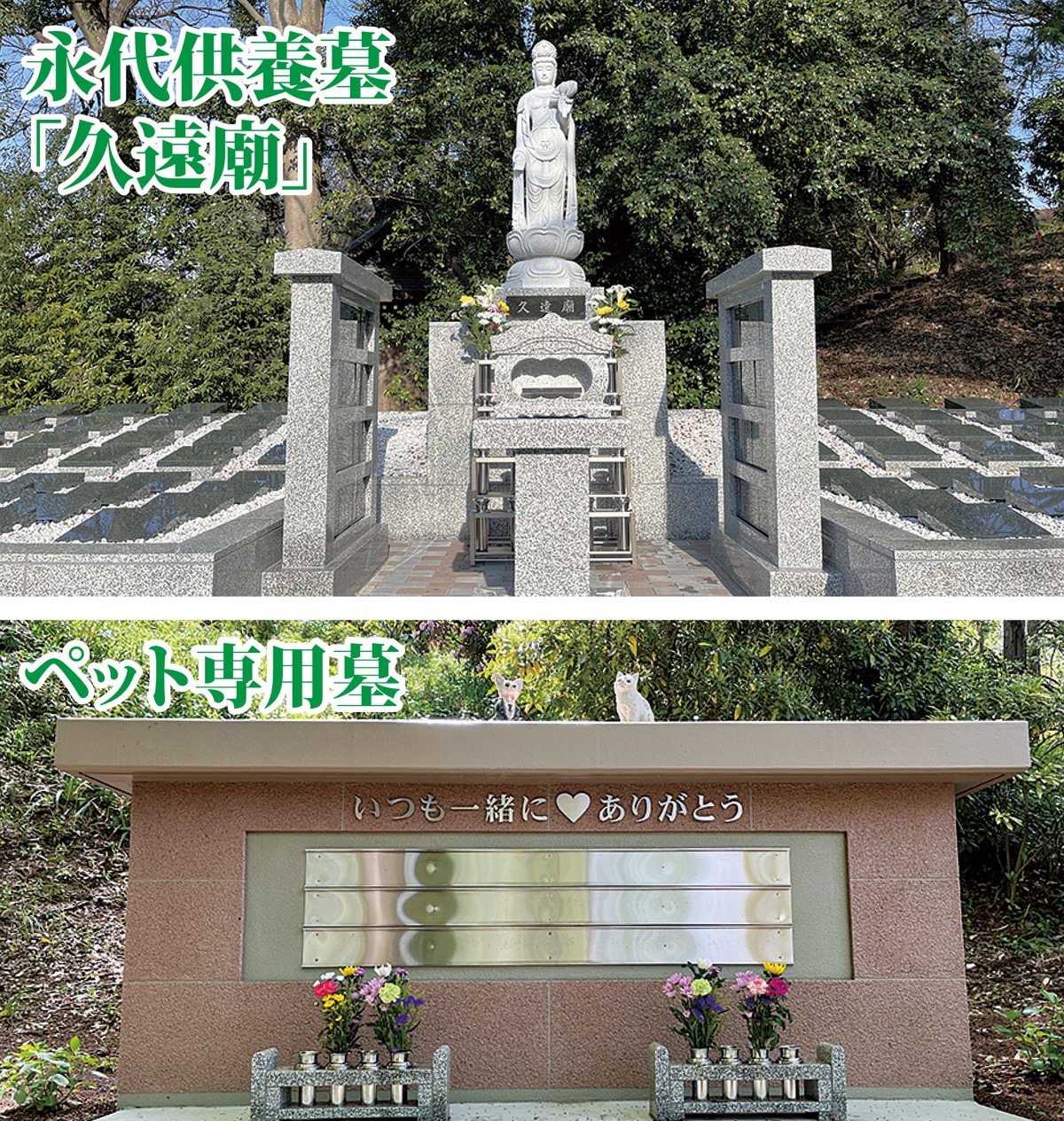 「お墓の後継ぎがいない」「今後のお墓の維持に悩んでいる」―-そんな不安や悩みに応えるのが、センター南の正覚寺(八木廣純住職)にある永代供養墓「久遠廟」だ。樹木墓地(個人墓)に希望の年数を安置し、その後に「久遠廟」に合祀するほか、最初から合祀することもできる。
