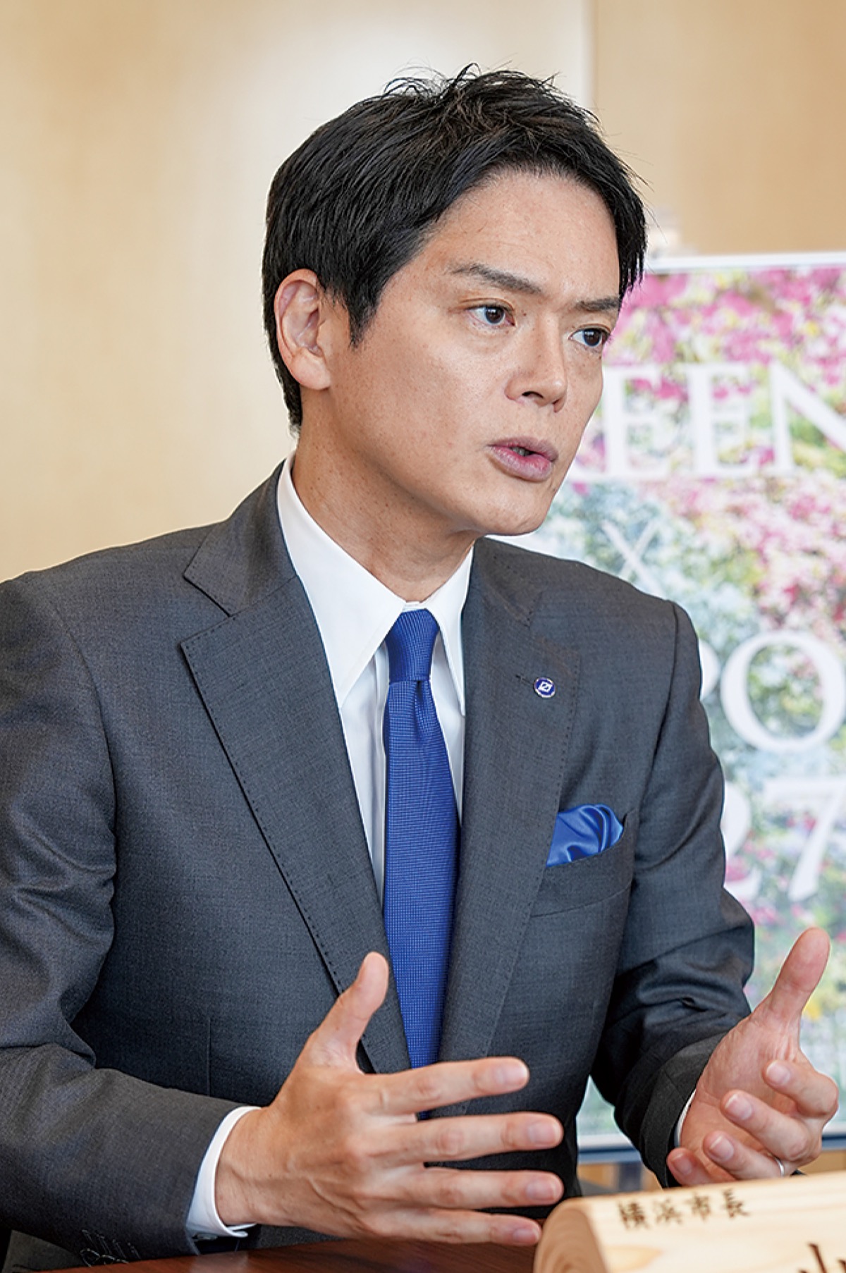 「今年を『機運醸成元年』と位置付け、市民の皆さまをはじめ、国内外の皆さまに、横浜で万博を開催する意義に共感していただけるよう、私自身が先頭に立って発信していきます」