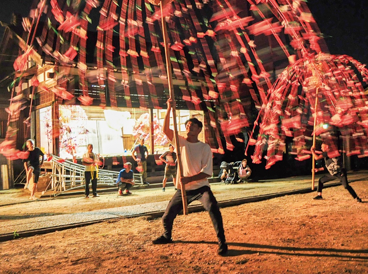 9月12日の練習には主催する池辺町連合自治会のメンバー14人が参加。神輿の露払いとして戦前から続いているという伝統行事「花籠の舞」を練習した。この花籠は自治会のメンバーが毎年、地元で採れた竹や和紙などを加工し、制作している。全長約3m50cm、重さ約15kgで、重心が上部にあるため、回すには相応の力と体力がいる。同自治会の栗原晃司会長は、「若い人がやってくれないと体力的に厳しい」と話す。近年、祭りの担い手不足が進み、舞をやるメンバーが減少しているという。「伝統あるお祭りだからこの先もずっとやっていけたら」と話した。