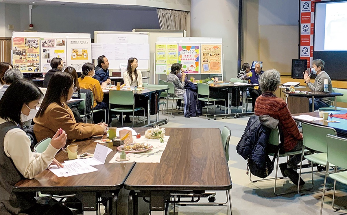 都筑区認知症カフェ連絡会(小泉雅二代表)は1月27日、「来て来て‼認知症カフェ」をかけはし都筑で初めて開催した。「認知症」に対して前向きな考え方の啓発やカフェの認知向上を目的に、意見交換会やミニ講座が行われた。