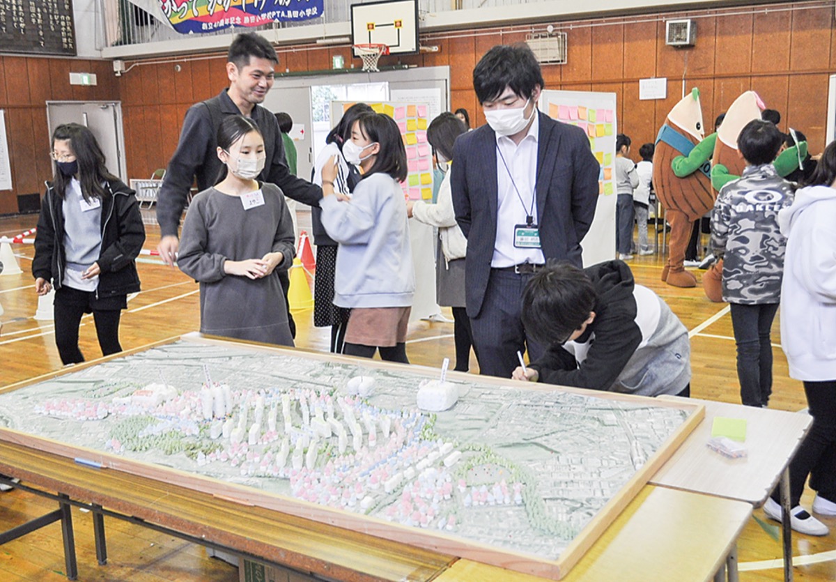 まず、「今の街並みをずっと残せるように」との思いから、紙粘土で勝田地区のジオラマを製作。当日は、来場者が思い出の場所にピンを立て、思い出話に花を咲かせた。また、現校舎を3D映像で探検できるコーナーや歴代の卒業アルバムが閲覧できるコーナー、謎解きコーナーなどを設置した。卒業生だという30代の女性はアルバムを覗きながら「昔懐かしい写真がたくさん見られて良かった。当時の記憶が甦りました」と話した。