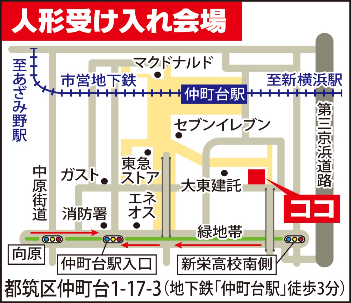受け入れ期間は4月13日(土)午前10時から5月11日(土)午後5時。希望日時を電話で予約してから直接、持ち込みを。雛人形をはじめ、日本人形やぬいぐるみ、こけしなど、顔のついている人形に限る。兜飾りや装飾備品、ガラスケースは不可で、本体のみ。写真やアルバムの供養も受け付ける。