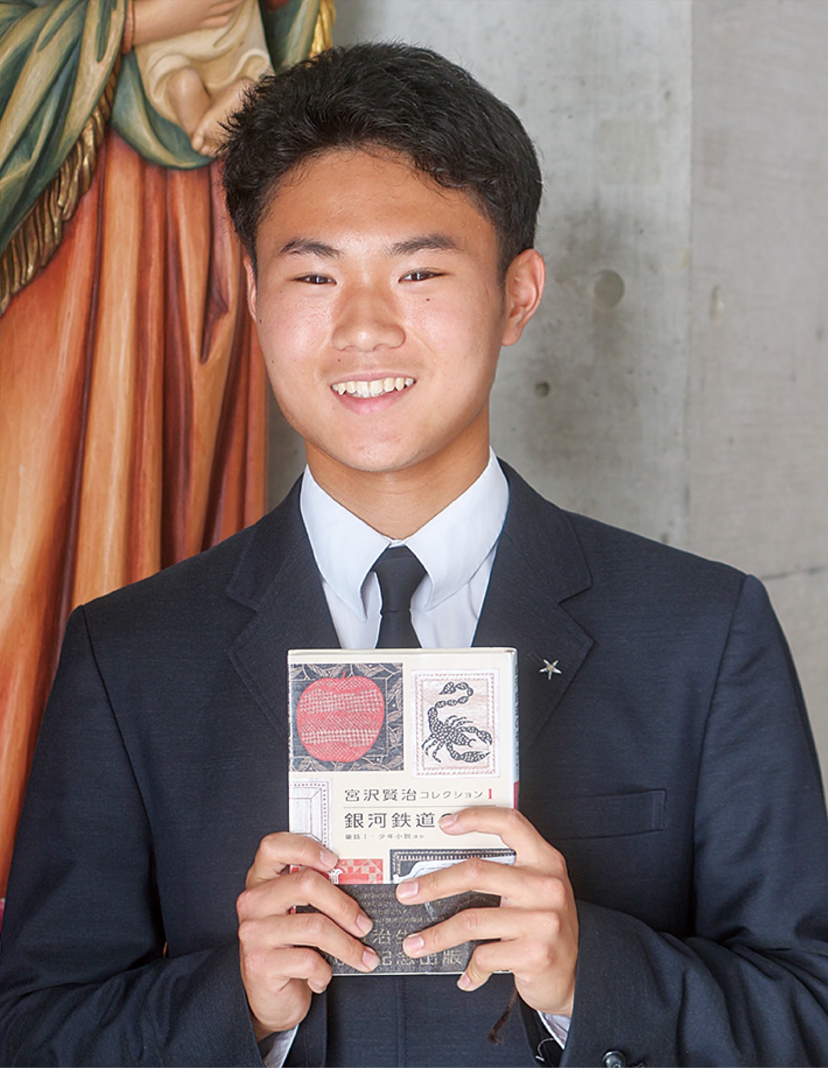 高水さんは、宮沢賢治の「銀河鉄道の夜」から「ぼくはそのひとのさいわいのためにいったいどうしたらいいのだろう」を選んだ。理由について、主人公のジョバンニが他者の幸福を願う場面が何度も出てくることに触れ、「どんなに自分が辛くとも他者を思いやる心を持ち、相手のために自分には何が出来るのかを考えるジョバンニの姿がとても美しく感じた」からと紹介した。