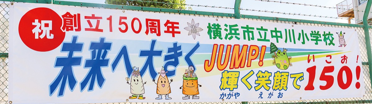 市内の多くの小学校が入学式・始業式を迎えた4月8日。今年創立150周年を迎える中川小学校(二瓶庄吾校長)ではこの日、150周年を祝う横断幕が児童たちに初披露された。