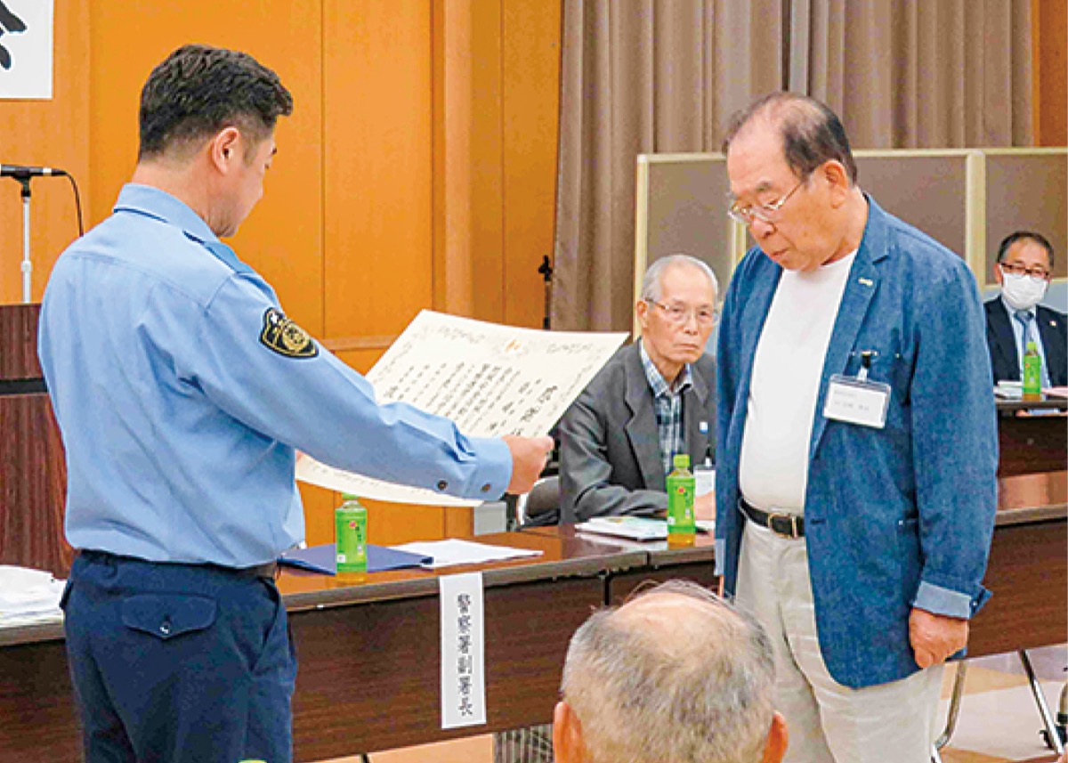 同会の理事を22年間、会長を15年間務めた岩嶋さんには永年の功労に対し、神奈川県警本部長から感謝状と記念メダルが、都筑警察署長からも感謝状が贈られた。