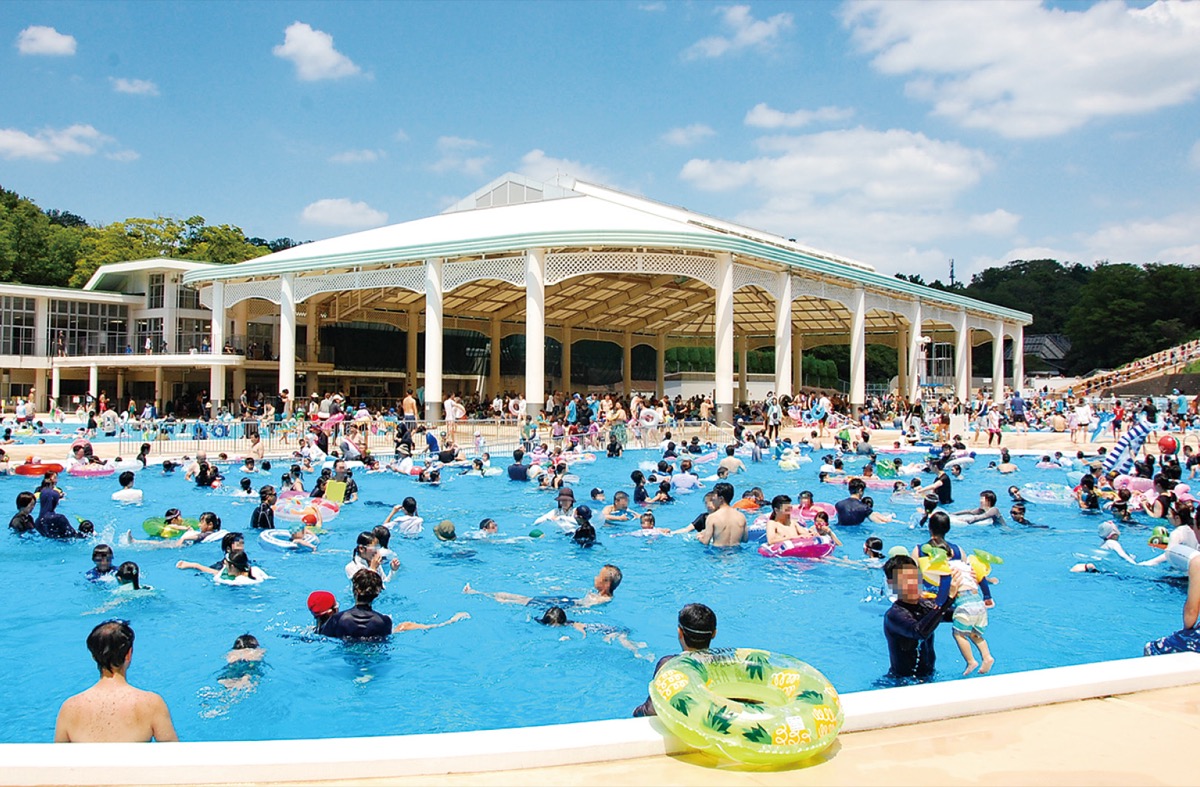 今年も夏が始まり、横浜市では7月8日に猛暑日を観測。暑い日々が続く中、こどもの国=青葉区奈良町700=の屋外プール=写真=が夏季限定でオープンしている。