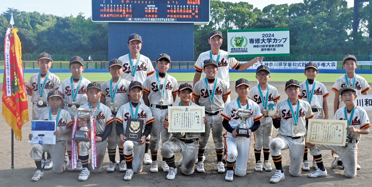 神奈川県学童軟式野球選手権大会「専修大学カップ2024」の決勝が8月8日、バッティングパレス相石スタジアムひらつか(平塚市)で行われ、都筑区内で活動する「川和シャークス」が優勝を決めた。
