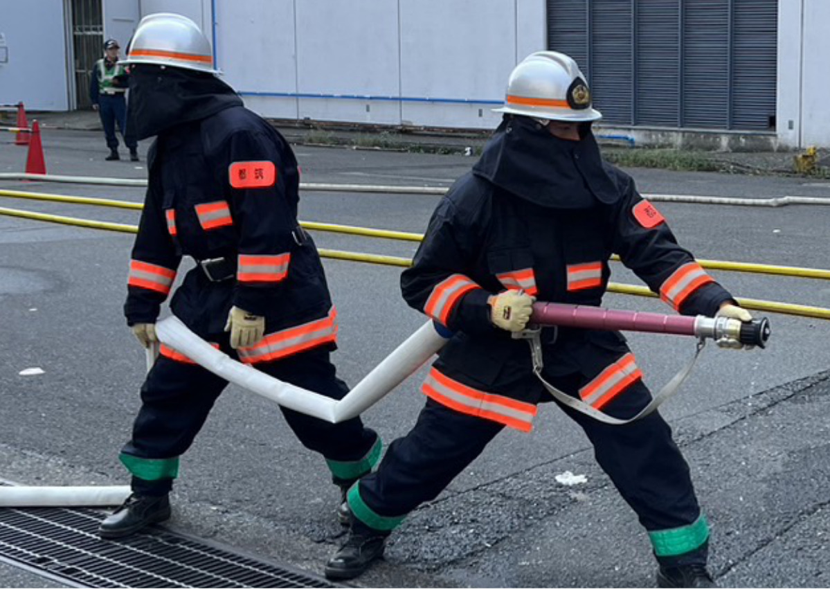 都筑消防団は9月8日、能登半島地震による輪島市大規模火災を踏まえ、資源循環局都筑工場=平台=で大規模な火災に対応するための訓練会を消防署と合同で実施した。