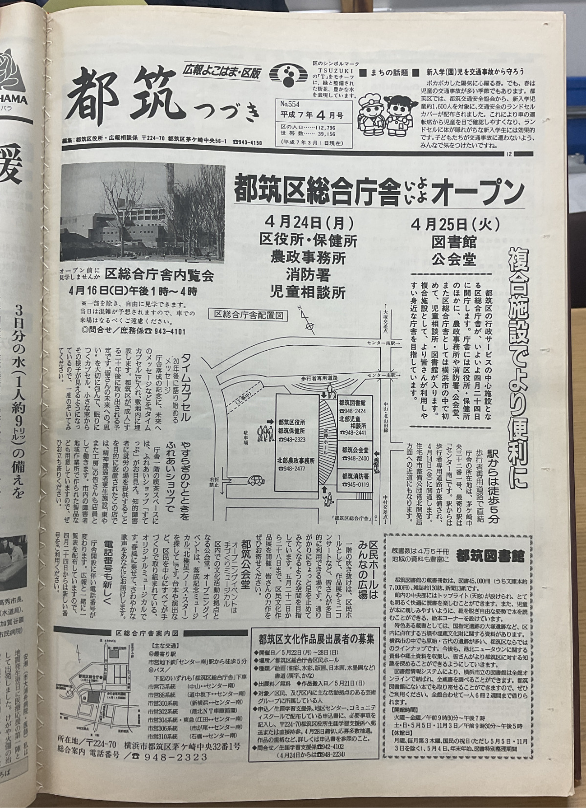 また都筑図書館ではフェスタに合わせ、展示「広報よこはまでみる都筑区の30年」を開催している。都筑区制30周年にちなみ、同館で所蔵していたバックナンバーを公開。「新区(D区)準備号」や、都筑区総合庁舎の誕生など、節目の出来事を掲載した紙面が展示されている。展示は12月2日(月)まで。