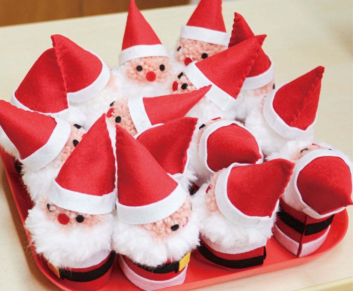 プロジェクトは同協会が社会貢献活動としてこの時期に行っているもの。参加者は、自分用にサンタ・トナカイ・ツリーのマスコットを作った後、自身が「サンタさん」となり、高齢者などへのプレゼントのため、もう1つサンタのマスコットを作る。