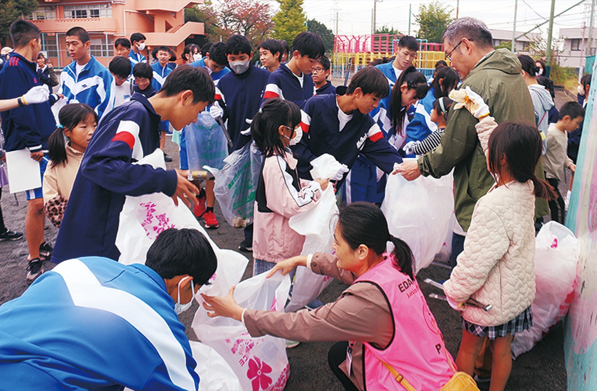 地区内に小・中・高の学校がある荏田南地区で11月15日、「グリーンCLEAN大作戦」が行われた。当日は荏田南小学校の3年生約110人と荏田南中学校の男女ソフトテニス部と演劇部の生徒約50人、荏田高校の2年生約70人の計約230人の児童・生徒が、地域の清掃と荏田南小学校と中学校沿いの遊歩道にチューリップの球根を植える活動に参加した。