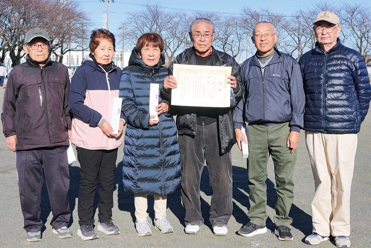 日差しは暖かいものの朝から冷たい風が吹く中、団体の部では中川東愛好会が初優勝を飾った。チーム代表の佐々木憲蔵さんは「早朝のラウンドは寒さもありスコアがよくなかったので、2ラウンド目で挽回しようと皆で決意を新たにした。気温もあがり、身体もほぐれてきた2ラウンド目は、皆良いスコアで回ってくれたので優勝できた。チームワークの勝利」と喜んだ。