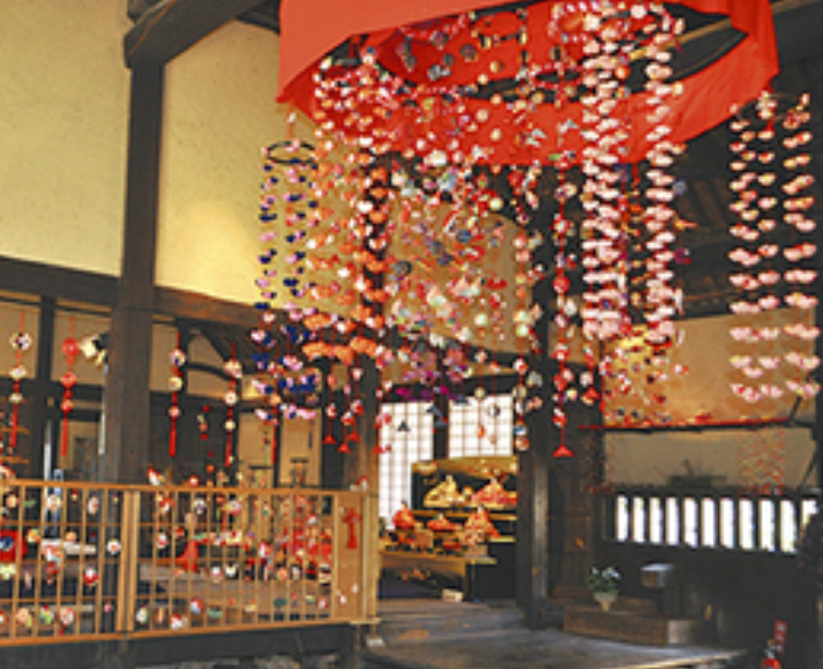 大正、昭和時代の雛人形をはじめ、つるし雛や折紙雛が飾られる。