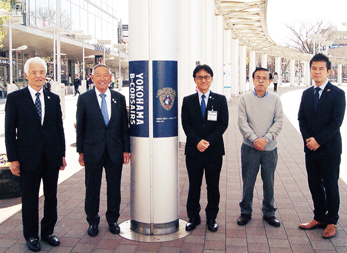 セレモニーには佐々田賢一区長、ウエインズトヨタ神奈川の間島努専務執行役員、横浜BCの植田哲也取締役らが出席。佐々田区長は「両者の共同提案に感謝。今後も公民一体で、都筑区の魅力を発信していきたい」と語った。