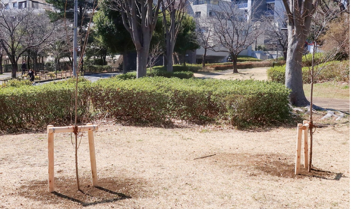 桜の木は「ジンダイアケボノ」という種類で、2018年に北山田小学校の3年生(当時)が植樹したもの。今回折られた桜は、樹勢が芳しくなかったため、同公園愛護会が都筑土木事務所に働きかけ、3月18日に公園南側に移植したばかりだった。