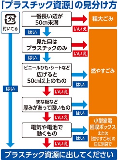 変更後は、プラスチックのみでできている製品がプラスチック資源として出せるようになる。ただ、広げると50cm以上になるものや、厚みがあって固いまな板などは、プラスチック資源をリサイクルする過程で使用する機械の故障原因となるおそれがあるため対象外。汚れが付いたプラスチックは、固形物が残らない程度に水で軽くすすぐなどすれば、プラスチック資源として出すことができる。
