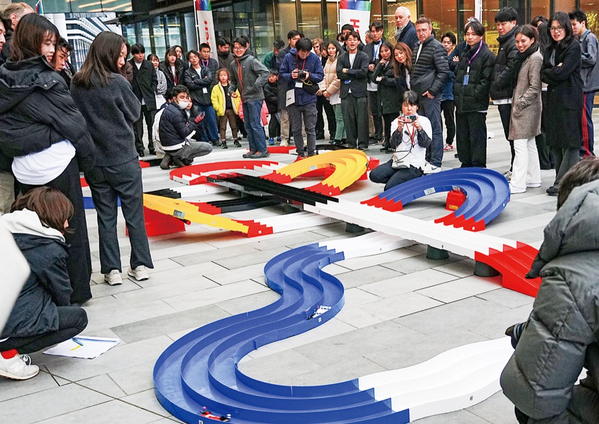 区内中川中央に本社を構えるボッシュ株式会社(クリスチャン・メッカー代表取締役社長)で4月1日、宝探しと四輪駆動車の模型「ミニ四駆」を使ったレースを実施する入社式が行われた。