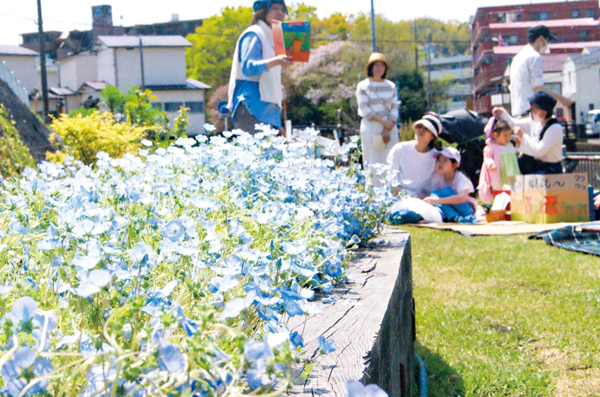 早渕川鍛治橋付近の早渕川・老馬谷ガーデン(HRG)で4月12日、ネモフィラ祭が開かれた。