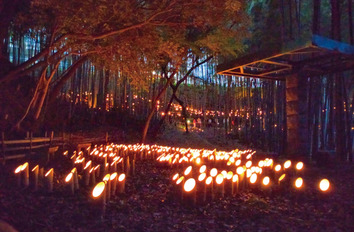 クラブではまつりの準備のため、冬に間伐した竹を利活用し、4月から約1800本もの竹灯籠を作成。今後、竹林内に配置し、まつり当日には水を入れ、ロウソクを浮かべ、着火する。普段見慣れた風景が幽玄の世界に替わる様子を見ようと、毎年1000人近い人が訪れる。
