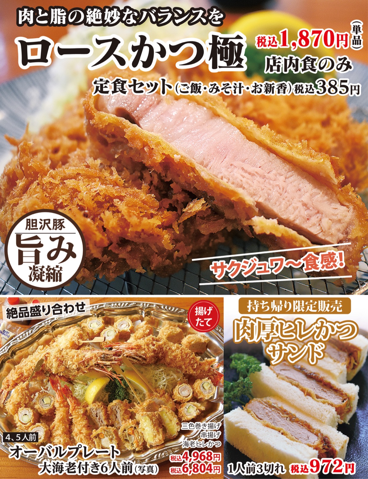 店舗で祝うなら女性にも大人気の「ロースかつ極」で。胆沢豚の希少部位リブロースを贅沢に使った逸品は食べ応えがあるのにヘルシーで、絶妙なバランスの脂身の優しい甘さが癖になる。数量限定なのでお早めに。