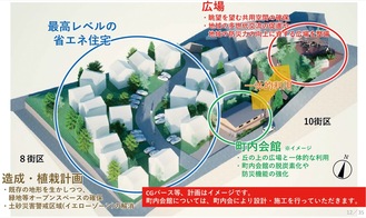 地区計画が変更されるのはC地区の約0・7ヘクタール。計画では「最高レベル」の省エネ住宅のモデル地区として、高断熱・高気密仕様で、太陽光発電や蓄電池を備えた定期借地権付きの戸建住宅が20棟分譲される(うち1棟は体験棟など)。また地域の多世代交流の促進や防災力の向上を目的とした供用広場や町内会館の整備が予定されている。