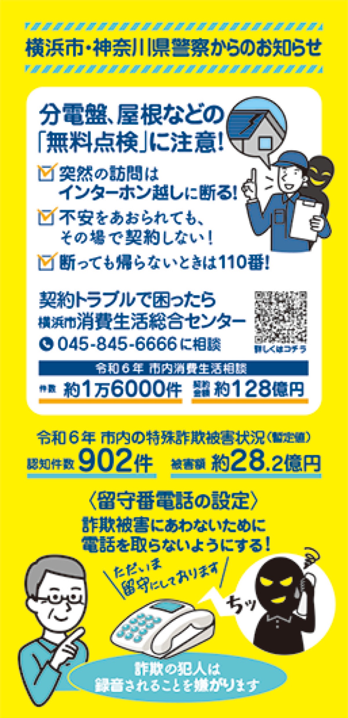 横浜市は、介護保険料額決定通知書に詐欺・消費者トラブルの啓発チラシを同封し、6月16日から順次発送している。送付対象者の65歳以上の第1号被保険者約94万7千人に注意を促す。