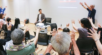 講座には、ろう者や上映会参加者のほか、同実行委員会から招待された牛久保東町内会子ども会の子どもたちなど40人以上が参加。船川選手との質疑応答や「頑張れ」「デフリンピック」などを手話で表現する方法などを学んだ。