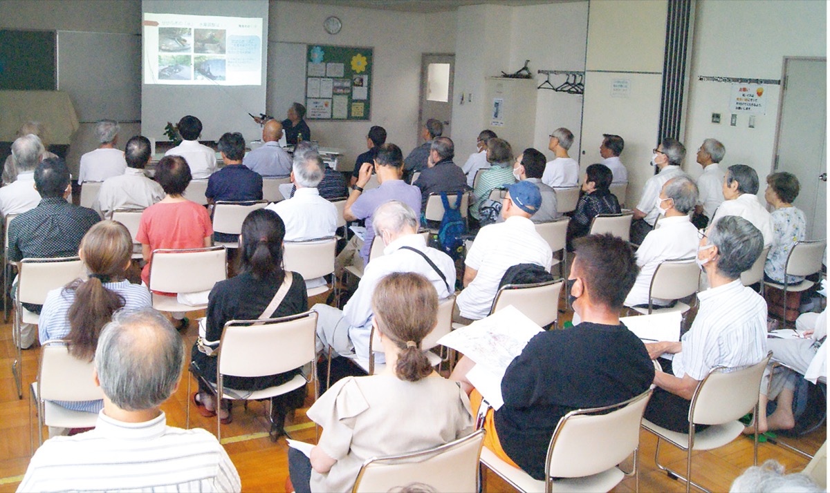 イベントは2部制で行われ、1部ではささぶねのみち公園愛護会の神原茂さんがささぶねのみちの成り立ちや同会の活動内容を紹介。2部では「渋沢音頭」を作詞した鹿野眞喜雄さんが、自身の体験談も交え、「四国遍路」の歴史や回り方を解説した。