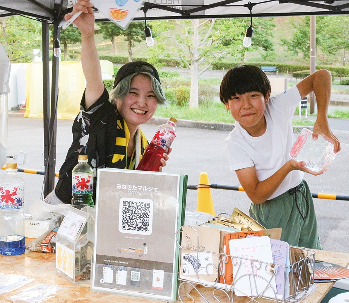日中の暑さを考慮し午後3時から始まった今回のマルシェ。会場には飲食や手作り品のブースが15店以上並び、買い物金額に応じて抽選会に参加できるスタンプラリーなどが催された。