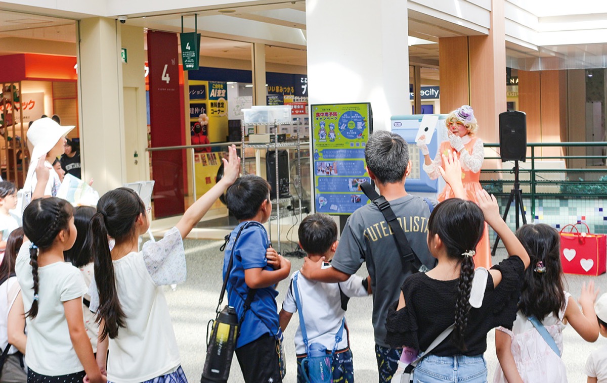 キャンペーンでは1階の正面入口と4階のエスカレーター前にのぼりやパネルを展示。またスーパーボールすくいに参加できる食中毒予防に関するアンケート、和楽会「昇」による和太鼓の演奏、パフォーマーのミニーさんによるマジックやバルーンアートなどを通し、食中毒への注意を呼び掛けた。
