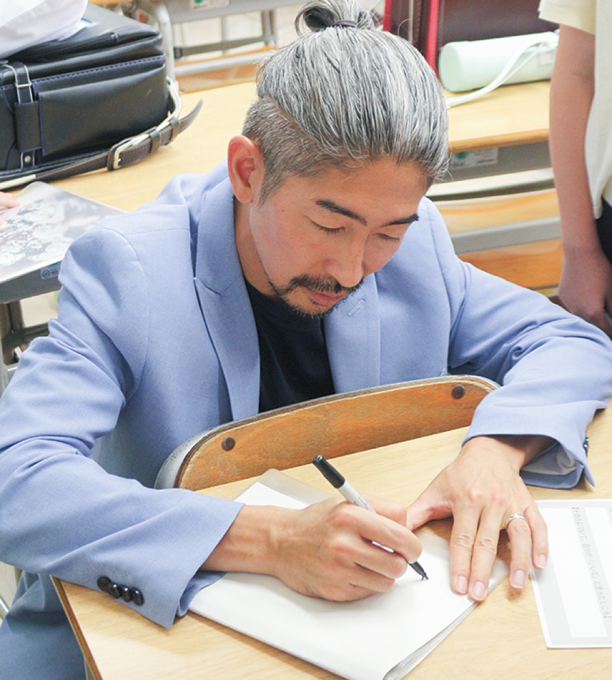 同校の卒業アルバムに将来の夢は「建築家」と書いていたという重松さん。「夢をかなえるには」という児童からの質問に、「共感してくれる人を増やすこと」と「仲間」の重要性を説いた。また「考え方を変えると何でも楽しくなる。勉強が『面白くない』と思っていたら、やり方や考え方を変えてみると、努力は『=我慢』ではなく、『=楽しいもの』になるはず」と語り、「好奇心を忘れずに追求し続けて」とエールを送った。