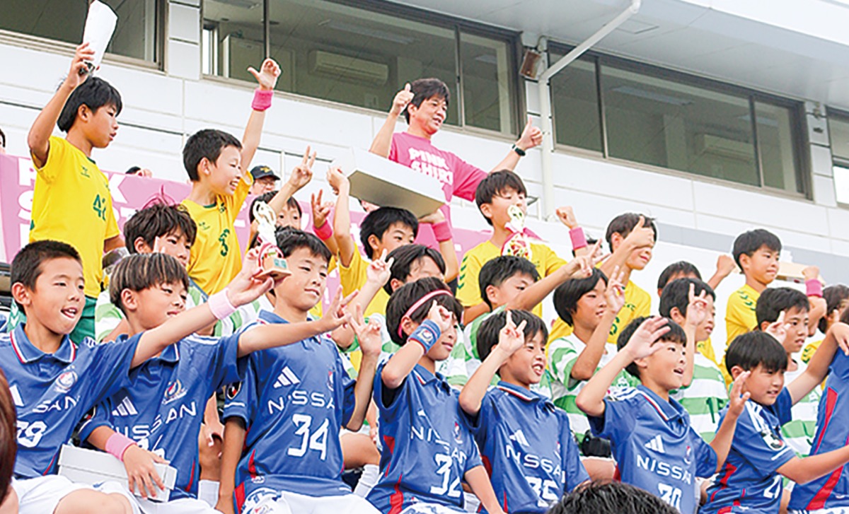 小学生のサッカー大会を通じ、「いじめストップ」のメッセージを横浜から発信することを目的とした「ピンクシャツカップ」が9月23日、ニッパツ三ツ沢球技場=神奈川区=で開かれた。大会には元サッカー日本代表の名波浩さんが訪れ、決勝戦を観戦。表彰式ではプレゼンターとして優勝チームなどにトロフィーを手渡した。