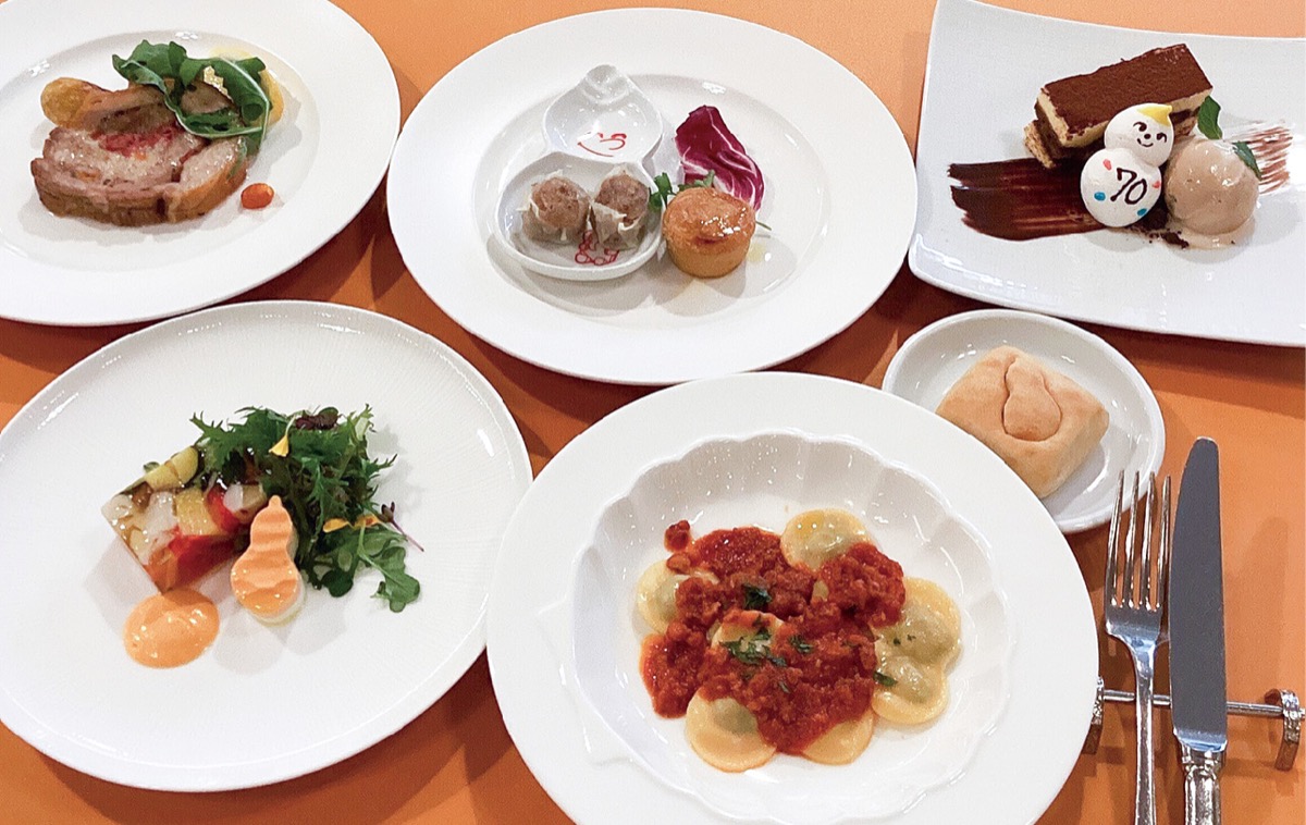 会場を本社レストラン「イルサッジオ」=西区=に移しての昼食には「ひょうちゃん」をあしらったスペシャルランチが提供された。