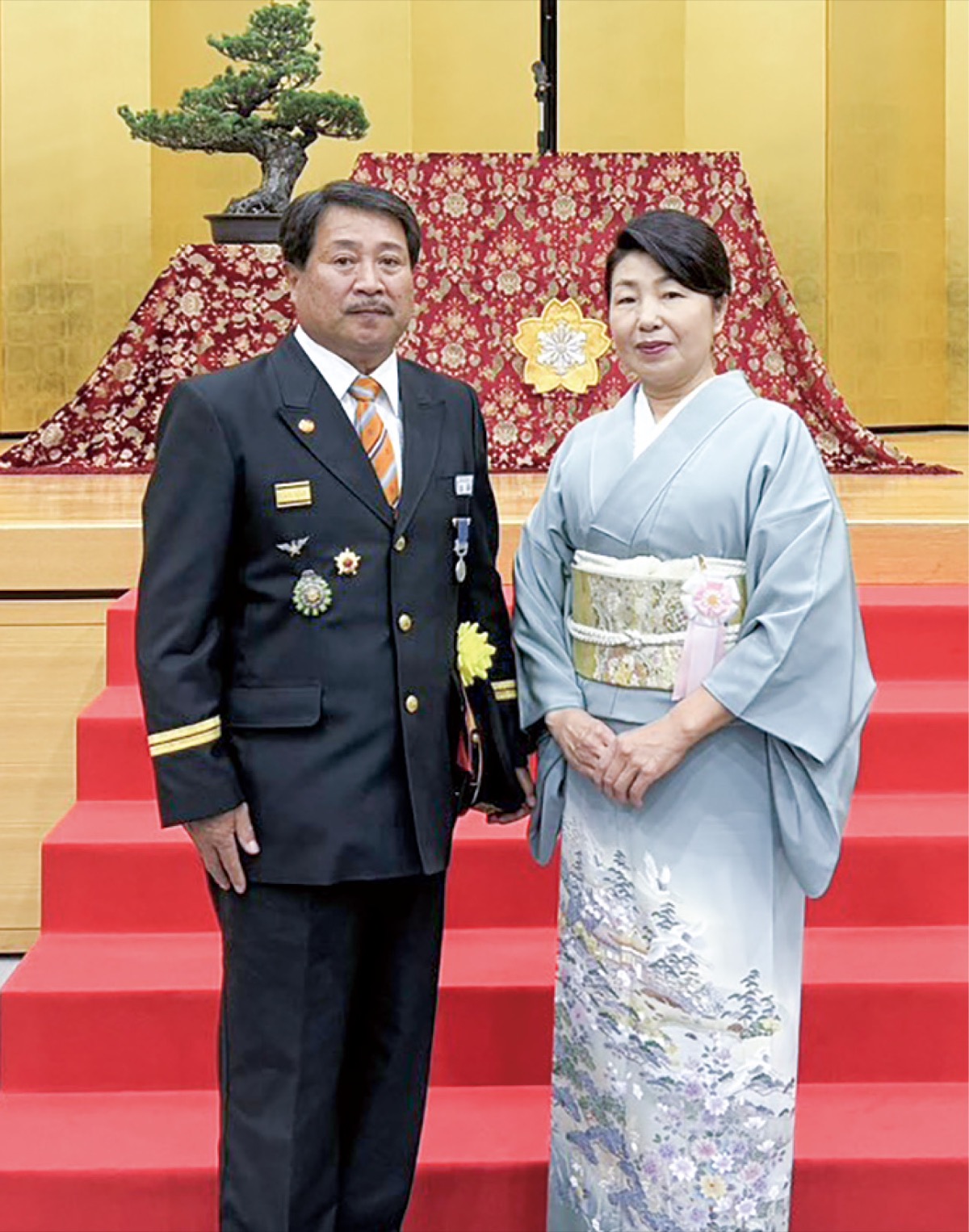 加藤さんは「40年近く団の活動を続けてきて、大変なことも多々経験してきた。今回、このような身に余る章をいただき、続けてきて良かったと思えた」と喜びを語り、「さらに貢献できるよう、これからも地域の安全・安心を守っていきたい」と話した。