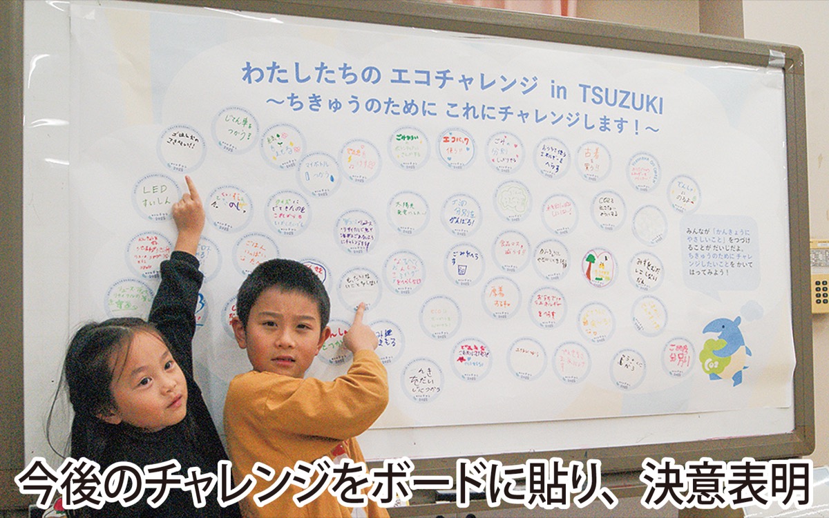 茅ケ崎小学校3年生の児童は「ご飯を残したり、電気を付けっぱなしにしないよう気を付けます」と宣言。児童の保護者は「展示物などがひらがなで表記されており、子どもも気軽に参加できた。学びを深められる貴重な機会になった」と笑顔で話した。