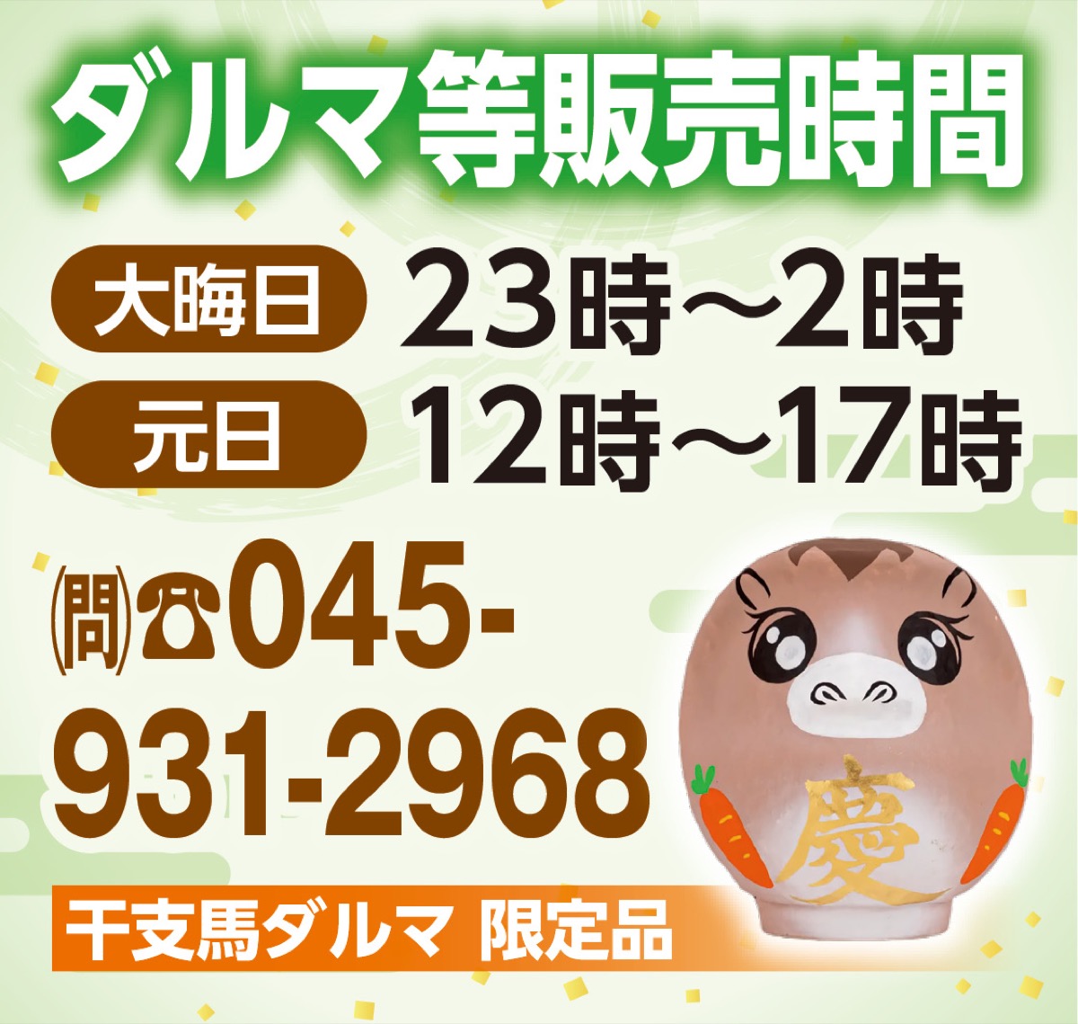 佐江戸町 高野山真言宗無量寺(豊田眞彰住職)が、大晦日と元日限定で新年開運祈願ダルマ、開運や恋みくじを販売。テレビで放映された各種キッチンカーも来場し、冷えた体を温められるメニューも堪能できる。