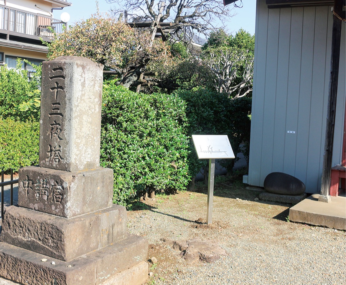 八坂神社に掲示された地図には、八坂神社の歴史や江戸時代に宿場だった川和宿の道筋が記載され、屋号のついた家屋が記されている。
