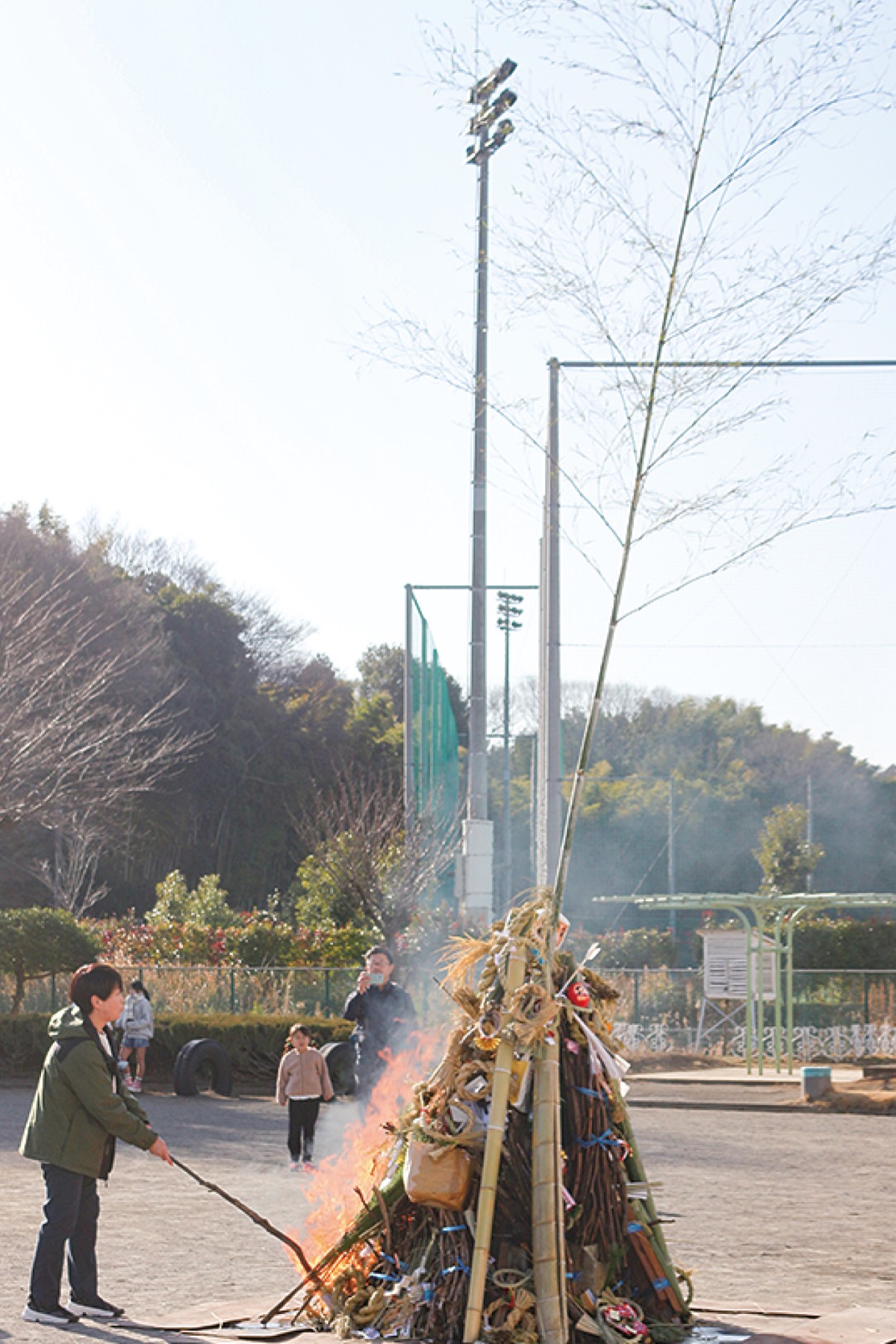 牛久保東町内会は1月10日、牛久保なつみかん公園でどんど焼きを行った。